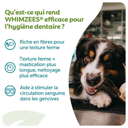 • Les rainures uniques des friandises leur permettent d’atteindre les interstices entre les dents de votre chien.