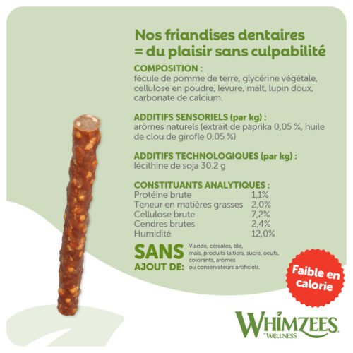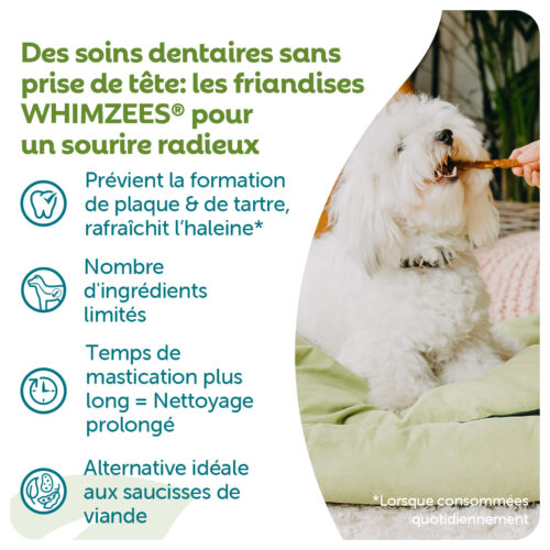 • Comme pour tout aliment, ne laissez pas votre chien mâcher la friandise sans surveillance.