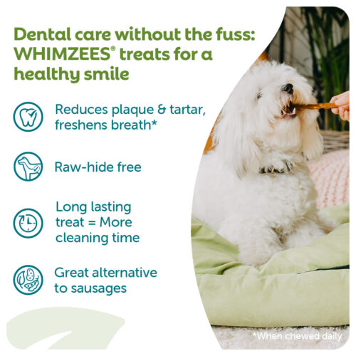 Who knew oral care could taste so good and work so well? The Veggie Sausage works hard to remove plaque and tartar from your dog’s teeth while offering a delicious treat for your pup. Made with only six primary ingredients, these all-natural dental chews also reduce the bacteria that causes bad breath.